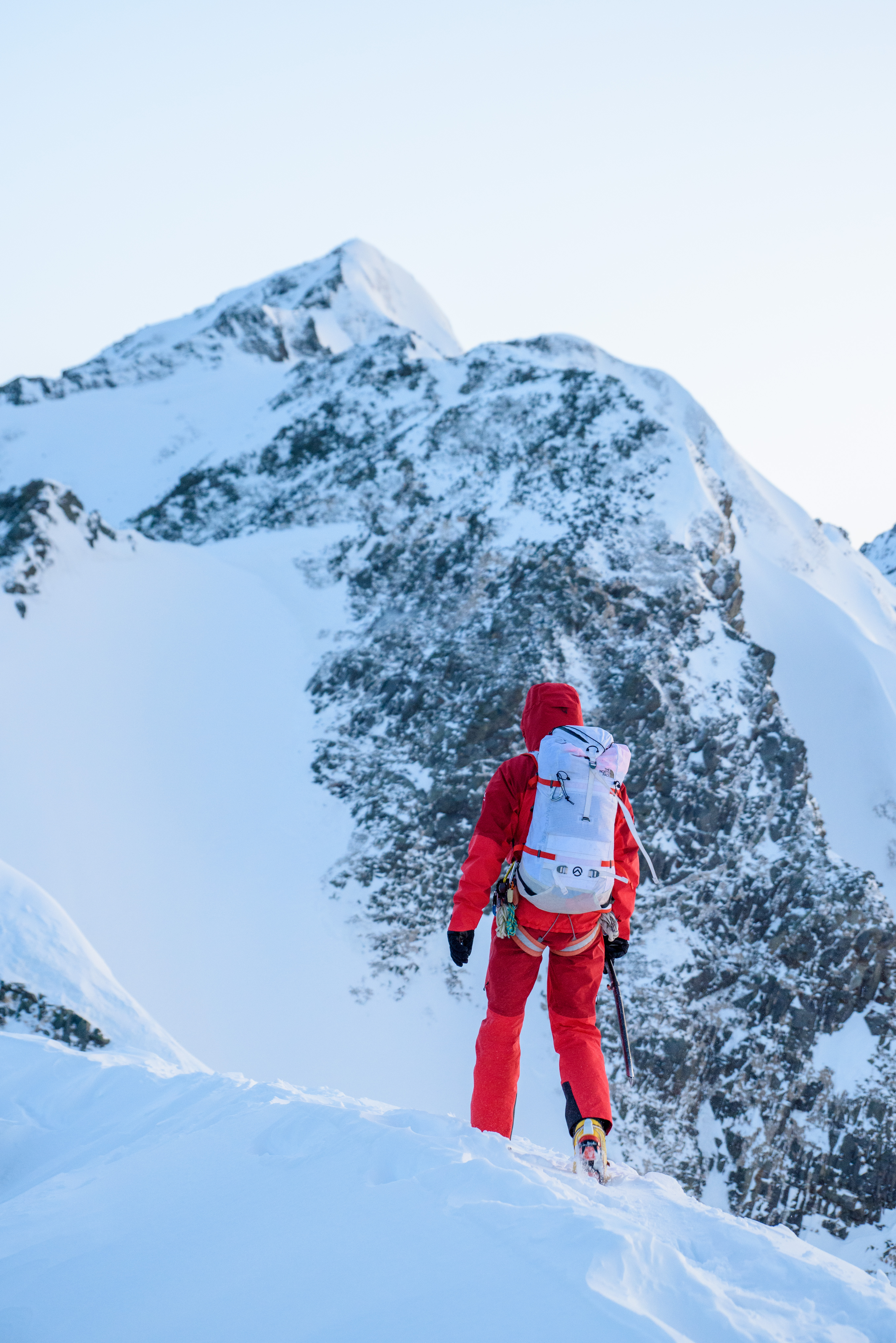 天野和明さんのウインターシーズンは、山岳ガイドの仕事で厳冬期の八ヶ岳や西穂高岳に向かったり、石井スポーツ登山学校で中央アルプスなどに出かけ、あるいは、冬季バリエーションルートの登攀や、バックカントリースキーなど、冬山で幅広く活動しています。その際、昨シーズンから使っている「AGLOW DW LIGHT JACKET & PANT」がすっかり気に入っていると言います。