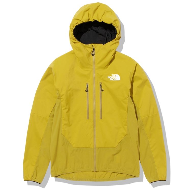 ナイロンやポリエステルを使った高密度素材で保温性ミッドレイヤーごと包み込むわけで、当然、着用することで保温力はアップしますが、あくまでもシェル自体には保温性は持たせず、防水透湿性と防風性に徹しています。そのぶん、軽量性と運動性能を追求しています。