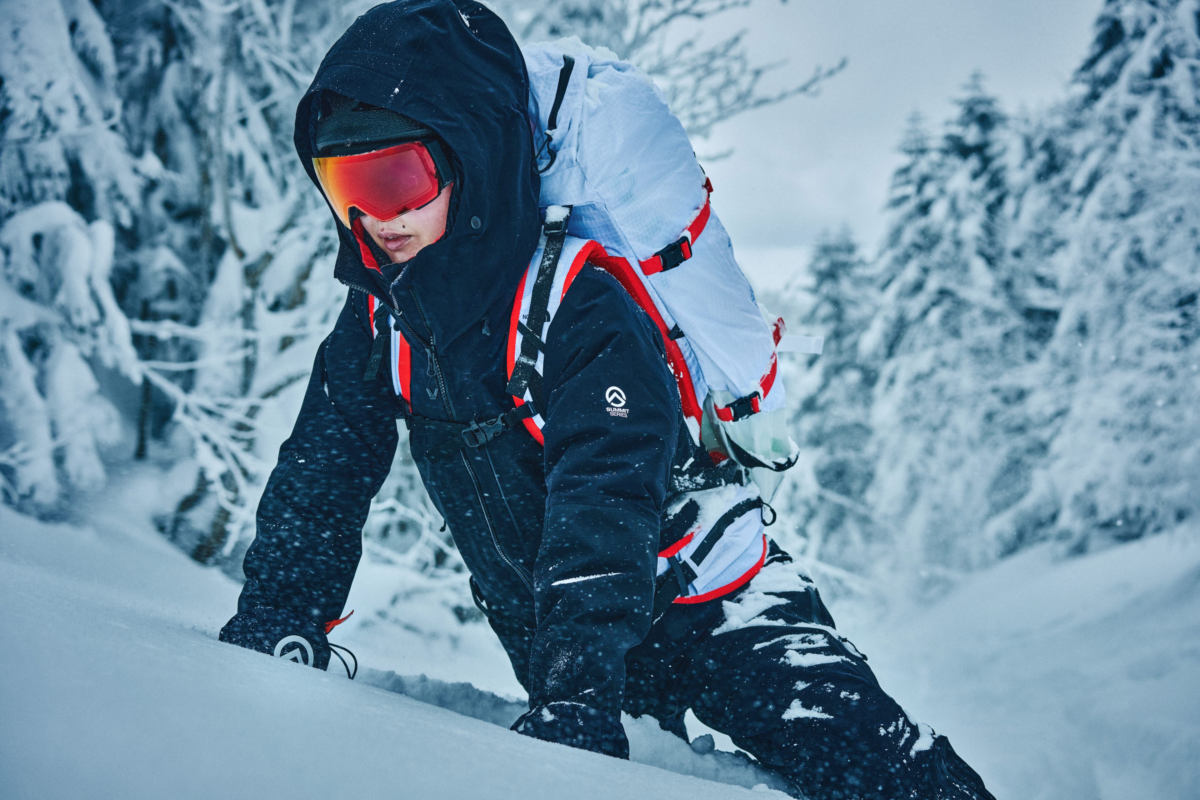 あとは山の中での行動時間です。たとえば、白馬のようにゴンドラやリフトからアクセスして、スキー場トップから2時間くらいハイクアップして滑り降りる。そうした行動なら、そこまで「100DRY」を重ねなくてもいいかもしれません。逆にスキー場を経由せず、最初からフルハイクで1日中、ハイクとランを繰り返すような場合は、絶対にあったほうがいいですよ、とご案内します。