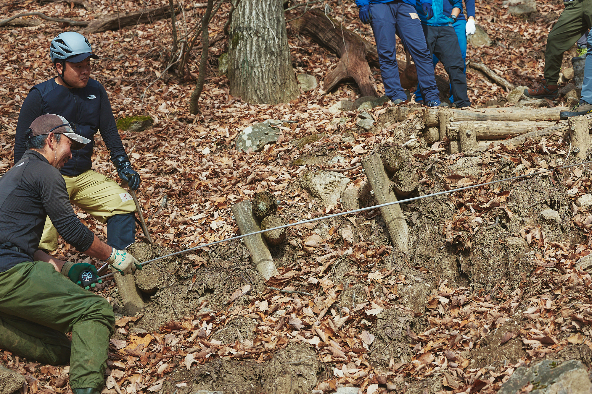 近自然工法。おそらく聞いたことがある人は多いかもしれないが、「外から資材などを持ち込まず、フィールドにある自然物を利用して登山道を整備する」というのは、あくまでもひとつの方法でしかない。