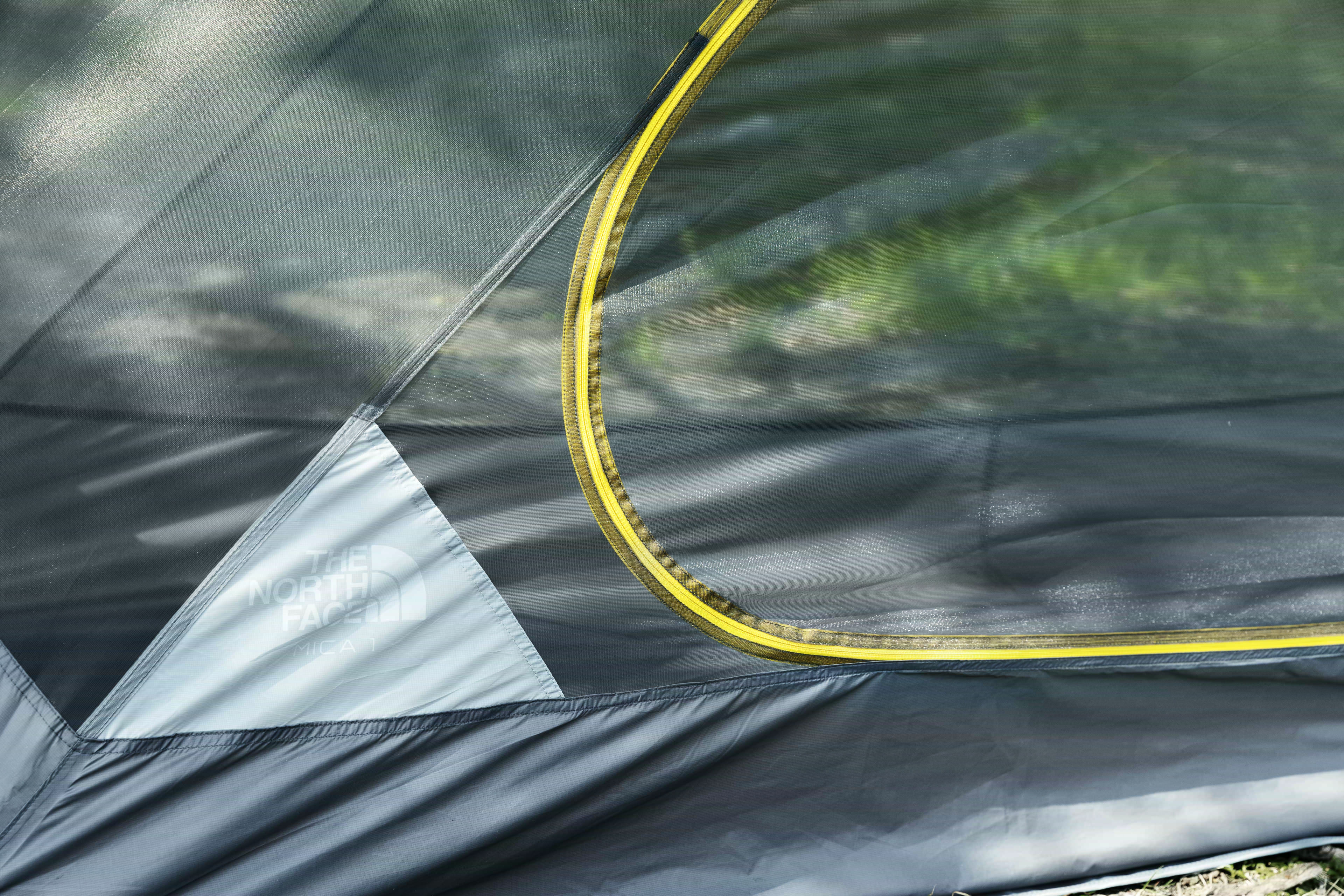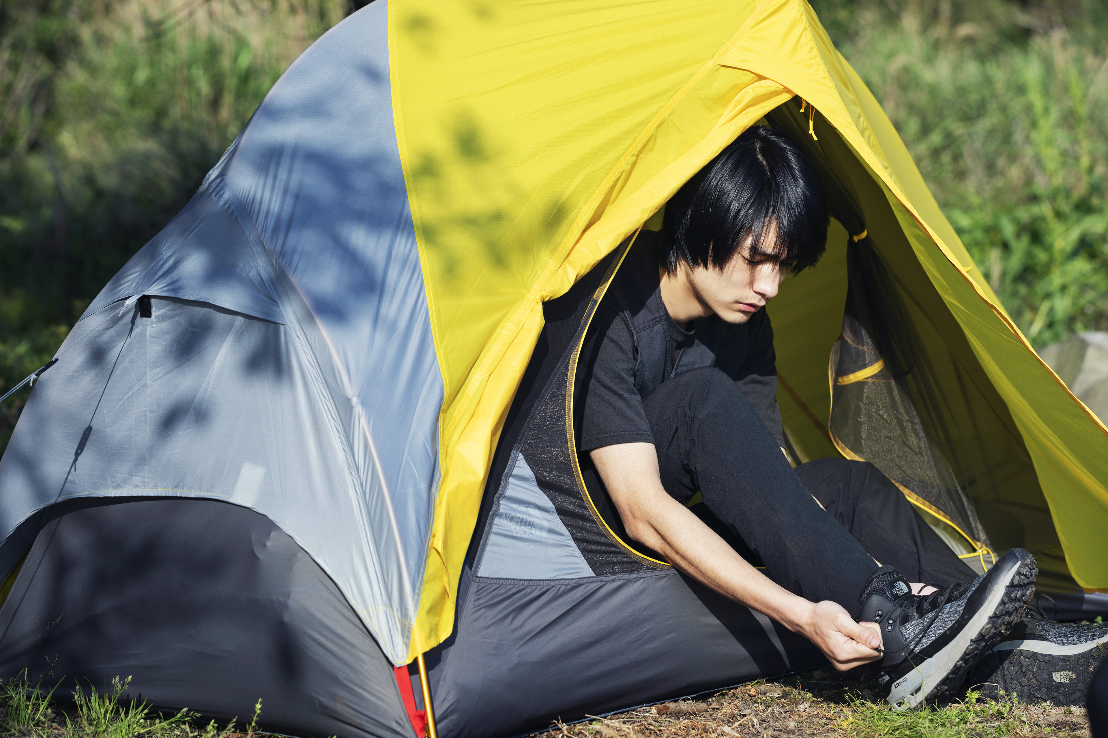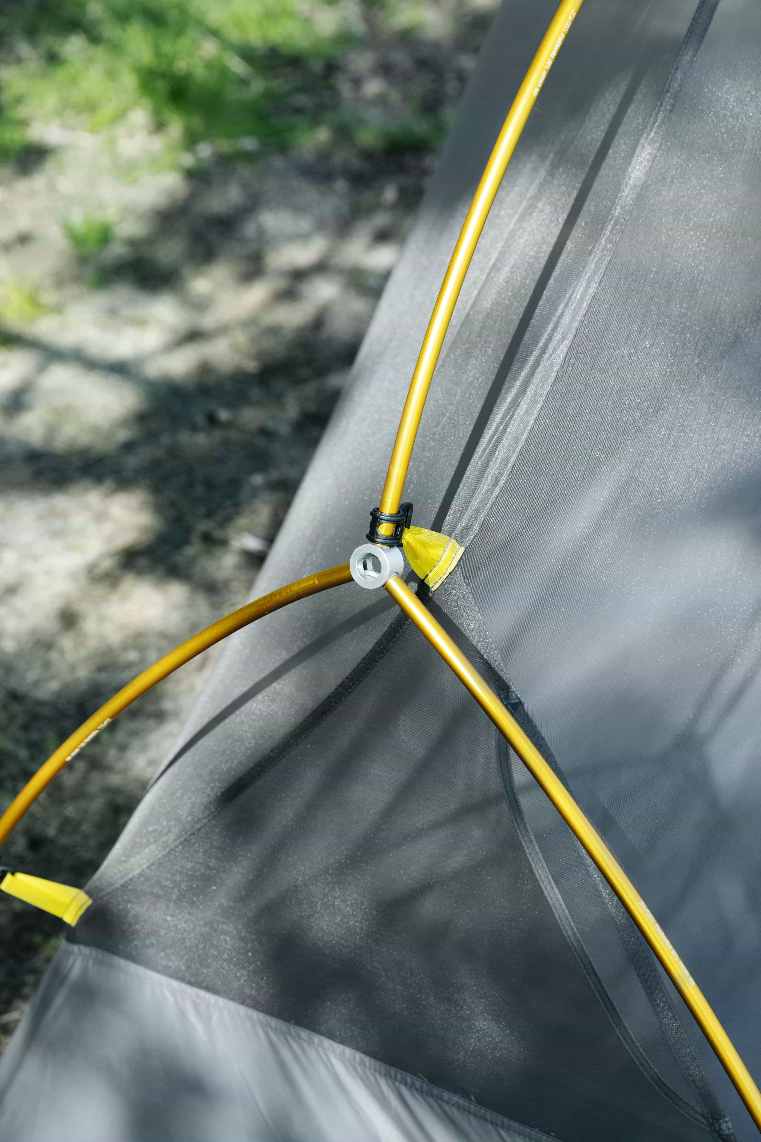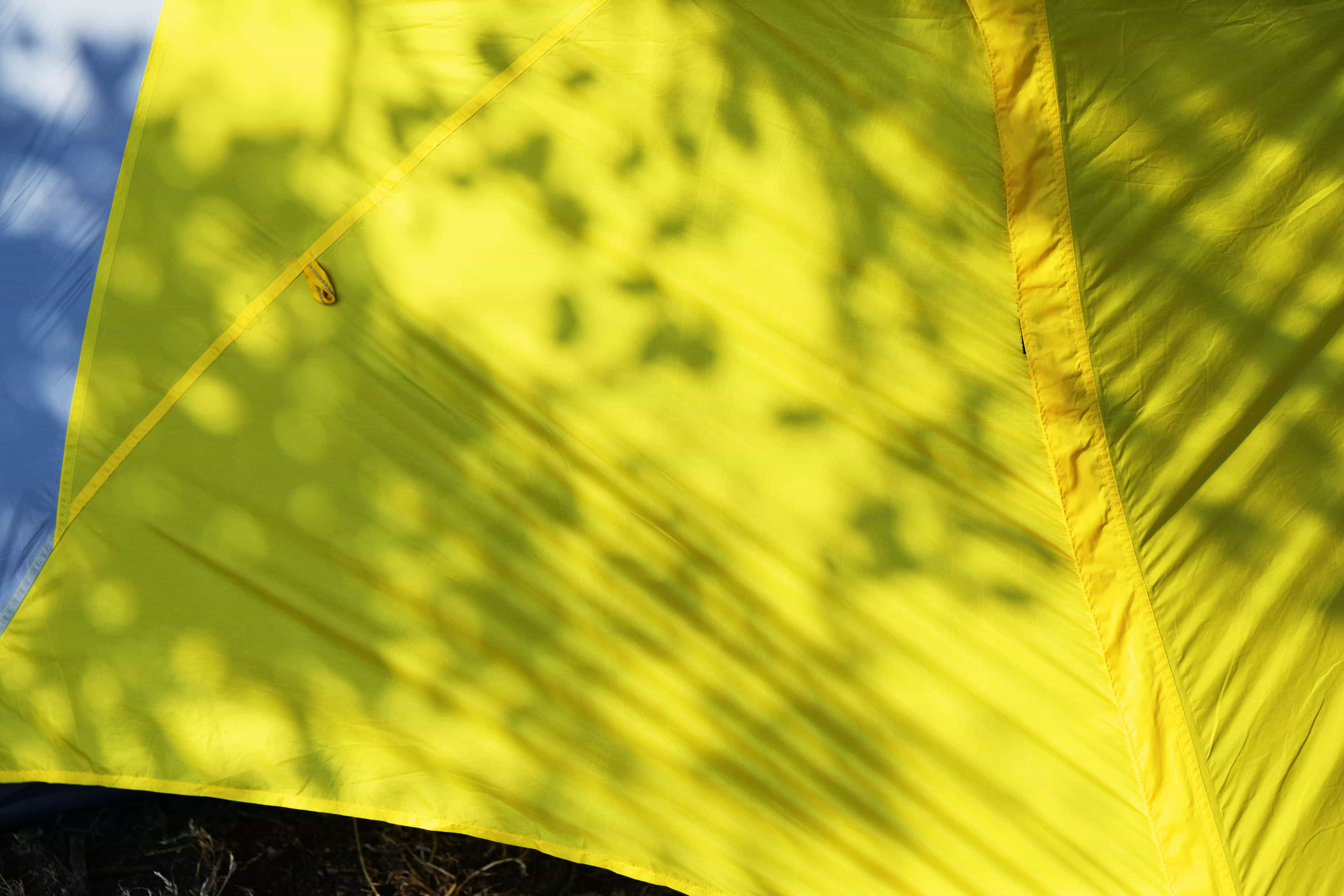 フライシートは、シリコンコーティングを施した20デニールのリップストップイロンを使用し、軽量化を図っている。