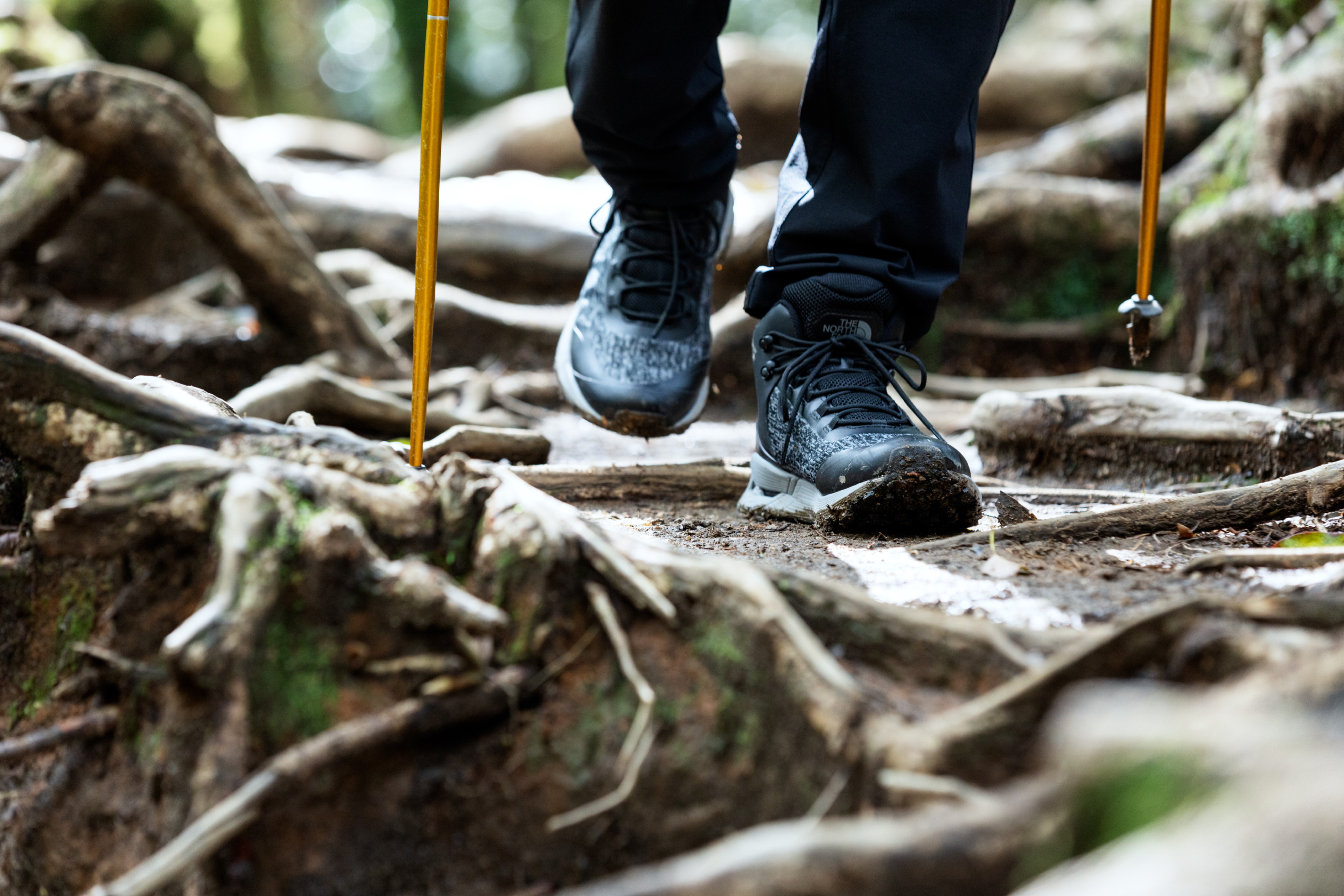 優れた防水透湿性を誇るGORE-TEX メンブレンを使用した、スピードハイキング用のミッドカットトレッキングシューズ。 デザイン性の高いニットアッパーに加え、クッション性に優れるエクストラフォーム™ミッドソールシステムを採用することで、 包み込むようなフィット感と、高い衝撃吸収性を発揮。 さらに、ミッドフット構造を台形に仕上げることで、着地時のヨコぶれを軽減し、安定感が向上。 アウトソールは、トレイルでの加速と減速、屈曲性のパフォーマンスを高めた、THE NORTH FACE独自開発のEXTS™システムで設計。 さまざまな路面コンディションとフィールド状況に対応する。