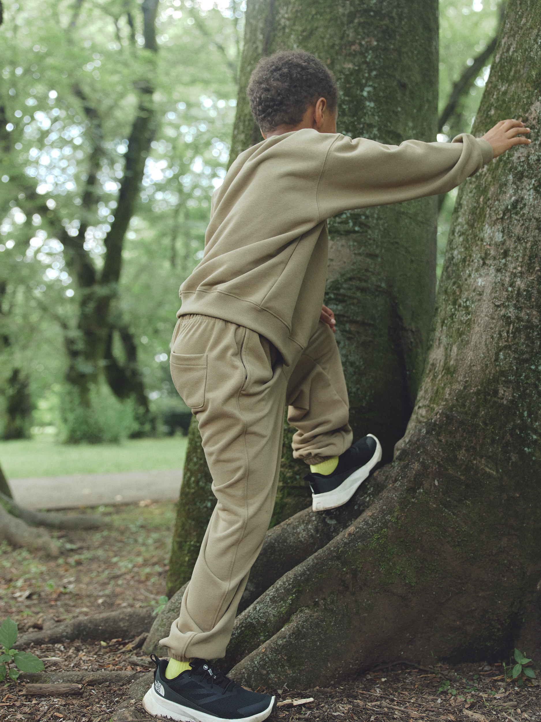 柔らかなT/C裏毛素材にストレッチ性を備え、動きに寄り添うリラックス感のあるシルエット。泥汚れが落ちやすい防汚加工を施し、ケアも簡単。シンプルで美しいデザインは、アウトドアから日常まで心地よく馴染み、アクティブな毎日を支える。