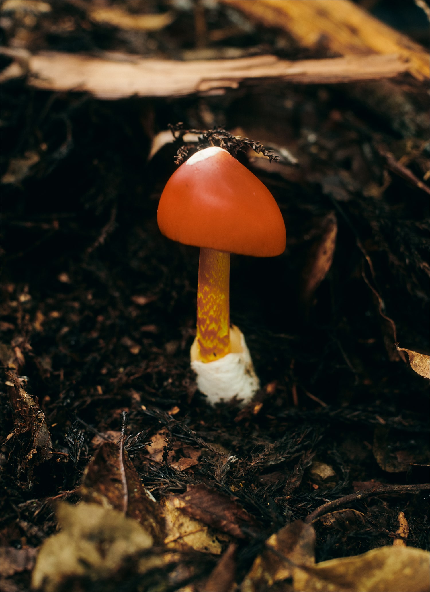 高音山山頂以降はアップダウンをしながら低山ハイクを繰り返していくことになる。ちょうどキノコの季節ということがあり、歩くたびにトレイル上に姿を現すキノコが目を楽しませてくれた。いつでも最初に見つけるのはmiuさん。