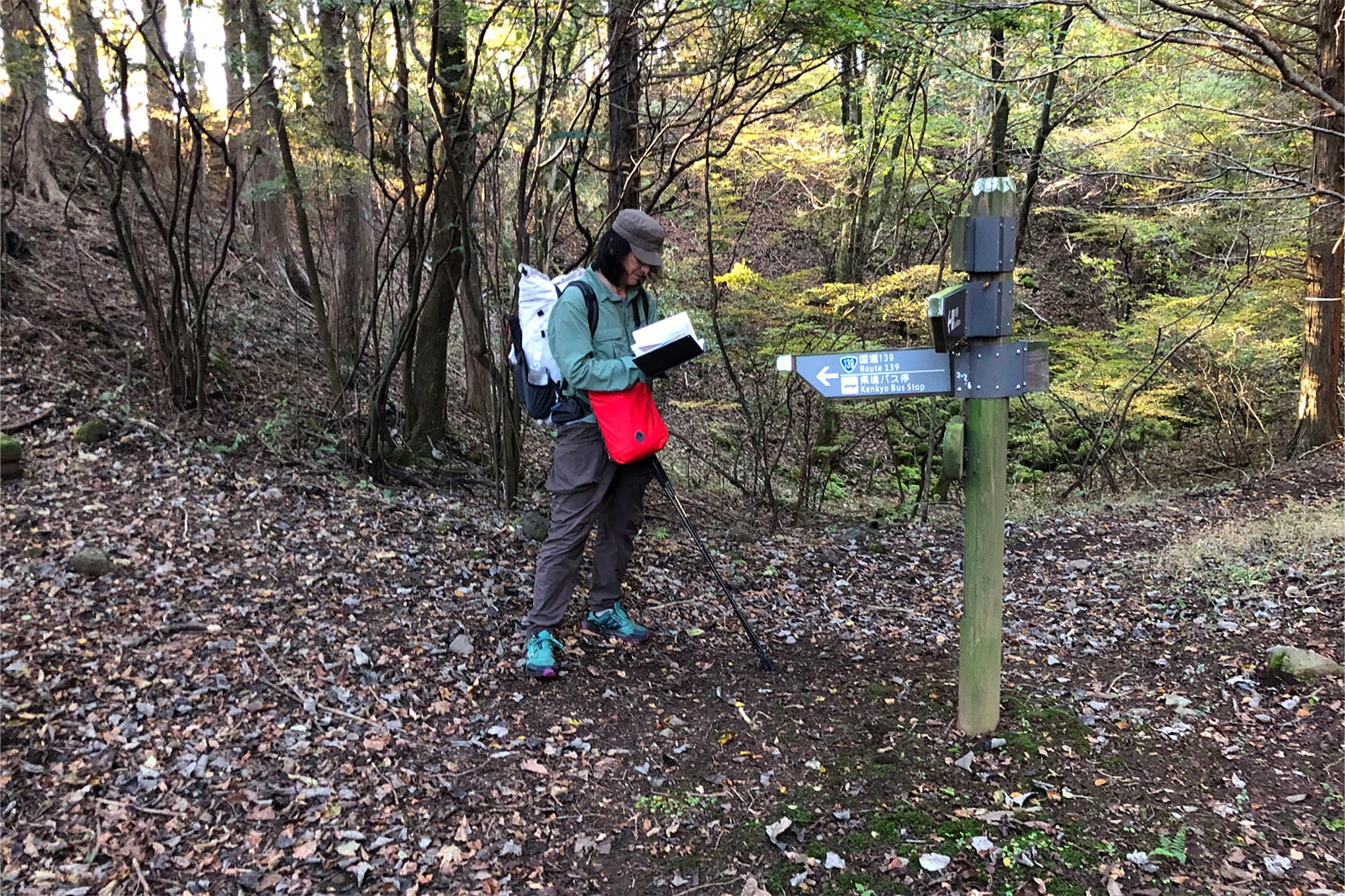 鈴木 東海自然歩道ルート上で唯一の国立公園を抜けていきます。富士五湖、樹海、高原というように富士山を感じながら楽しいルートが続いていきます。そして静岡の中部を越えていくと茶畑と里山の連続になるんです。山と集落の人の営みのコントラストがとてもよかったです。ただ、静岡市のあたりで数年前の台風の影響で道が崩れていて大きく迂回の必要が出る箇所がありましたね。本線に戻ることはできますけどね。その後、静岡西部から愛知のルートは昔の街道跡がルートになっていて、緩やかな低山と、林道と舗装路がつづく人里エリアを歩くという感じですね。