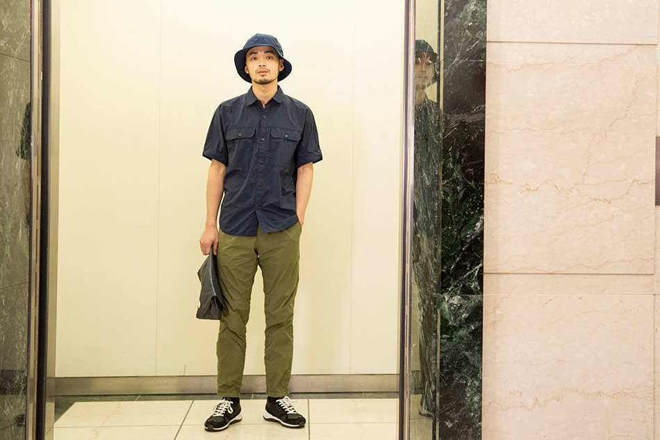 S/S Tech Indigo Shirt(NR21653) ¥15,000+tax, Journeys Pant(NB31651) ¥14,000+tax, Tech Paper Roll Bag(NM81623) ¥3,700+tax