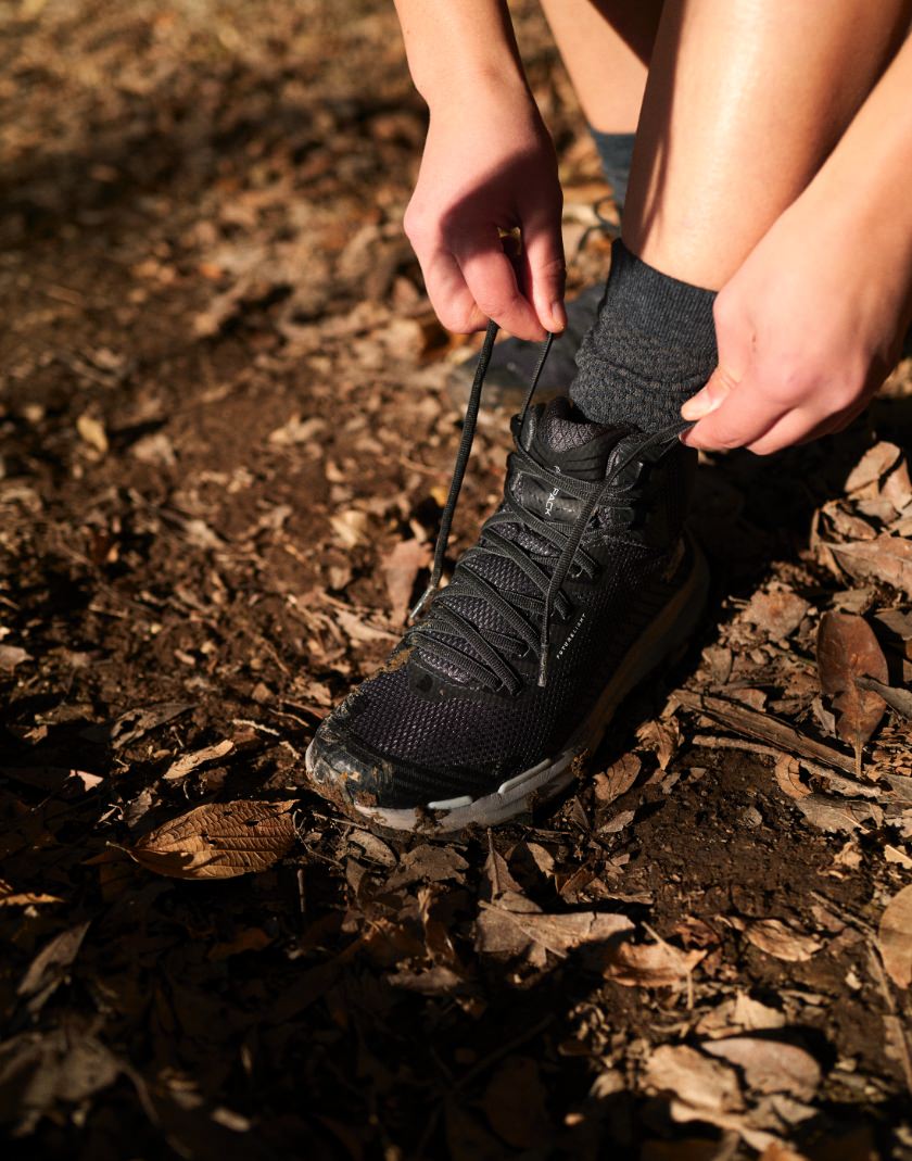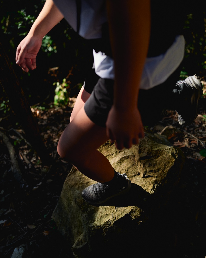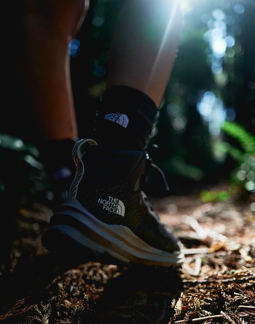 「エネルギーを前へ進む力に変える」というトレイルランニングシューズに採用される最新テクノロジーVECTIV™と、『ファストパッキング』というスタイルに求められる機能を備えたトレッキングシューズ。3Dプレートが着地時に抜群の安定感をもたらし、ゆりかごの脚のようなロッカー構造のミッドソールが効率的な足運びを促してくれる。そして、自社開発したアウトソールが濡れた岩場や不安定な路面でも確かなグリップ力を発揮し、『Light & Fast』のコンセプトを実現させる。